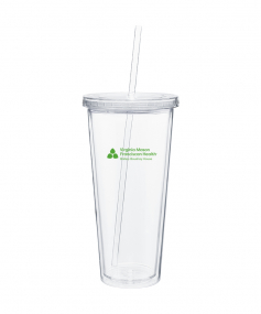20 oz double wall acrylic tumbler with threaded lid and matching soft straw.
