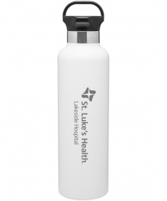 24 oz powder coated double wall 18/8 stainless steel thermal bottle with copper vacuum insulation, threaded gear-shaped insulated lid and carrying handle Complies with FDA, Prop 65. 11.25" H x 3" W