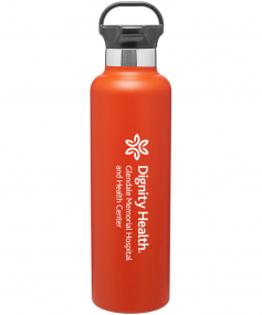 24 oz powder coated double wall 18/8 stainless steel thermal bottle with copper vacuum insulation, threaded gear-shaped insulated lid and carrying handle Complies with FDA, Prop 65. 11.25" H x 3" W