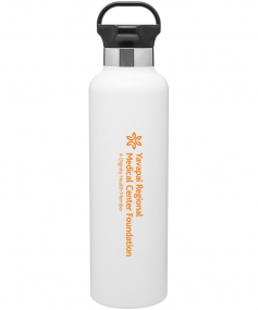 24 oz powder coated double wall 18/8 stainless steel thermal bottle with copper vacuum insulation, threaded gear-shaped insulated lid and carrying handle Complies with FDA, Prop 65. 11.25" H x 3" W