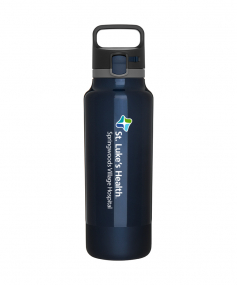25 oz double wall 18/8 stainless steel thermal bottle with copper vacuum insulation, threaded one-touch push-button lid, locking mechanism, carrying handle, and rubberized base - patent pending - gift box included; Hand wash recommended; Do not microwave; 11 h x 3 w ; 739mL.