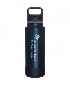 25 oz double wall 18/8 stainless steel thermal bottle with copper vacuum insulation, threaded one-touch push-button lid, locking mechanism, carrying handle, and rubberized base - patent pending - gift box included; Hand wash recommended; Do not microwave; 11 h x 3 w ; 739mL.