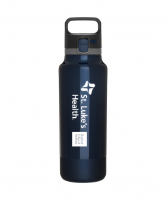 25 oz double wall 18/8 stainless steel thermal bottle with copper vacuum insulation, threaded one-touch push-button lid, locking mechanism, carrying handle, and rubberized base - patent pending - gift box included; Hand wash recommended; Do not microwave; 11 h x 3 w ; 739mL.
