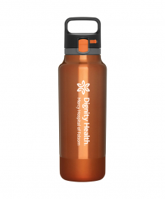 25 oz double wall 18/8 stainless steel thermal bottle with copper vacuum insulation, threaded one-touch push-button lid, locking mechanism, carrying handle, and rubberized base - patent pending - gift box included; Hand wash recommended; Do not microwave; 11 h x 3 w ; 739mL.
