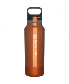 25 oz double wall 18/8 stainless steel thermal bottle with copper vacuum insulation, threaded one-touch push-button lid, locking mechanism, carrying handle, and rubberized base - patent pending - gift box included; Hand wash recommended; Do not microwave; 11 h x 3 w ; 739mL.