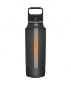 25 oz double wall 18/8 stainless steel thermal bottle with copper vacuum insulation, threaded one-touch push-button lid, locking mechanism, carrying handle, and rubberized base - patent pending - gift box included; Hand wash recommended; Do not microwave; 11 h x 3 w ; 739mL.