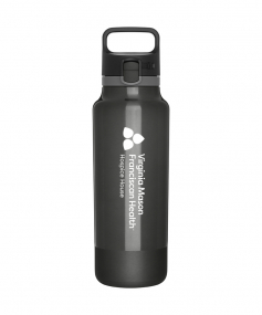 25 oz double wall 18/8 stainless steel thermal bottle with copper vacuum insulation, threaded one-touch push-button lid, locking mechanism, carrying handle, and rubberized base - patent pending - gift box included; Hand wash recommended; Do not microwave; 11 h x 3 w ; 739mL.