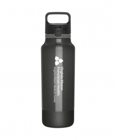 25 oz double wall 18/8 stainless steel thermal bottle with copper vacuum insulation, threaded one-touch push-button lid, locking mechanism, carrying handle, and rubberized base - patent pending - gift box included; Hand wash recommended; Do not microwave; 11 h x 3 w ; 739mL.