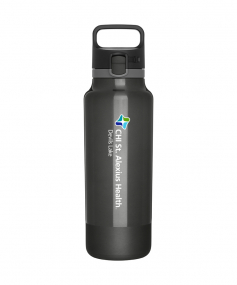 25 oz double wall 18/8 stainless steel thermal bottle with copper vacuum insulation, threaded one-touch push-button lid, locking mechanism, carrying handle, and rubberized base - patent pending - gift box included; Hand wash recommended; Do not microwave; 11 h x 3 w ; 739mL.