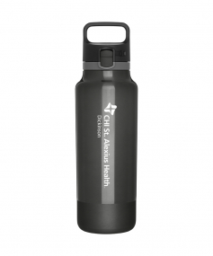 25 oz double wall 18/8 stainless steel thermal bottle with copper vacuum insulation, threaded one-touch push-button lid, locking mechanism, carrying handle, and rubberized base - patent pending - gift box included; Hand wash recommended; Do not microwave; 11 h x 3 w ; 739mL.
