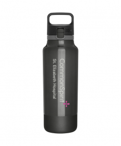 25 oz double wall 18/8 stainless steel thermal bottle with copper vacuum insulation, threaded one-touch push-button lid, locking mechanism, carrying handle, and rubberized base - patent pending - gift box included; Hand wash recommended; Do not microwave; 11 h x 3 w ; 739mL.