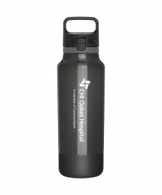 25 oz double wall 18/8 stainless steel thermal bottle with copper vacuum insulation, threaded one-touch push-button lid, locking mechanism, carrying handle, and rubberized base - patent pending - gift box included; Hand wash recommended; Do not microwave; 11 h x 3 w ; 739mL.