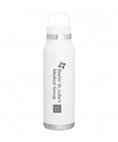 25 oz double wall 18/8 stainless steel thermal bottle with copper vacuum insulation, threaded insulated lid with carrying handle, high polish accent, stainless steel base, and powder coated finish. Hand wash recommended; Do not microwave. Dimensions: 10 H x 3".