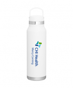 25 oz double wall 18/8 stainless steel thermal bottle with copper vacuum insulation, threaded insulated lid with carrying handle, high polish accent, stainless steel base, and powder coated finish. Hand wash recommended; Do not microwave. Dimensions: 10 H x 3".