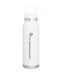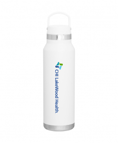 25 oz double wall 18/8 stainless steel thermal bottle with copper vacuum insulation, threaded insulated lid with carrying handle, high polish accent, stainless steel base, and powder coated finish. Hand wash recommended; Do not microwave. Dimensions: 10 H x 3".