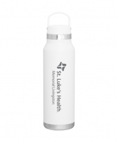 25 oz double wall 18/8 stainless steel thermal bottle with copper vacuum insulation, threaded insulated lid with carrying handle, high polish accent, stainless steel base, and powder coated finish. Hand wash recommended; Do not microwave. Dimensions: 10 H x 3".