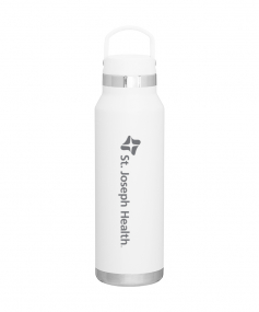 25 oz double wall 18/8 stainless steel thermal bottle with copper vacuum insulation, threaded insulated lid with carrying handle, high polish accent, stainless steel base, and powder coated finish. Hand wash recommended; Do not microwave. Dimensions: 10 H x 3".