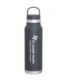 25 oz double wall 18/8 stainless steel thermal bottle with copper vacuum insulation, threaded insulated lid with carrying handle, high polish accent, stainless steel base, and powder coated finish. Hand wash recommended; Do not microwave. Dimensions: 10 H x 3".