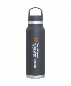 25 oz double wall 18/8 stainless steel thermal bottle with copper vacuum insulation, threaded insulated lid with carrying handle, high polish accent, stainless steel base, and powder coated finish. Hand wash recommended; Do not microwave. Dimensions: 10 H x 3".