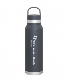 25 oz double wall 18/8 stainless steel thermal bottle with copper vacuum insulation, threaded insulated lid with carrying handle, high polish accent, stainless steel base, and powder coated finish. Hand wash recommended; Do not microwave. Dimensions: 10 H x 3".