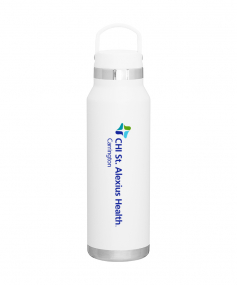25 oz double wall 18/8 stainless steel thermal bottle with copper vacuum insulation, threaded insulated lid with carrying handle, high polish accent, stainless steel base, and powder coated finish. Hand wash recommended; Do not microwave. Dimensions: 10 H x 3".