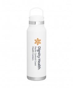25 oz double wall 18/8 stainless steel thermal bottle with copper vacuum insulation, threaded insulated lid with carrying handle, high polish accent, stainless steel base, and powder coated finish. Hand wash recommended; Do not microwave. Dimensions: 10 H x 3".