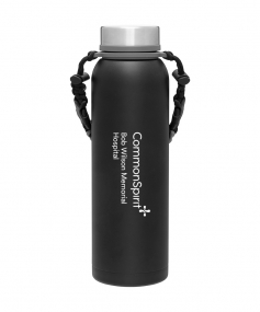 32 oz double wall 18/8 stainless steel thermal bottle with copper vacuum insulation, insulated stainless steel threaded lid, silicone ring, removable strap with buckles, removable clasps, and powder coated finish. Individual gift box. Hand wash recommended. Do not microwave. Complies with FDA, Prop 65. 11" H x 3.1875" W