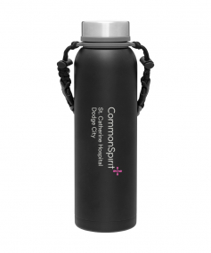 32 oz double wall 18/8 stainless steel thermal bottle with copper vacuum insulation, insulated stainless steel threaded lid, silicone ring, removable strap with buckles, removable clasps, and powder coated finish. Individual gift box. Hand wash recommended. Do not microwave. Complies with FDA, Prop 65. 11" H x 3.1875" W