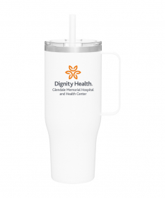 40 oz double wall 18/8 stainless steel thermal mug with copper vacuum insulation, stainless steel rim, dual-purpose push-on clear lid, matching sliding closure, flexible wide silicone straw, and powder coated finish. Individual gift box. Hand wash recommended. Do not microwave. Complies with FDA, Prop 65. 9.75" H x 4" W