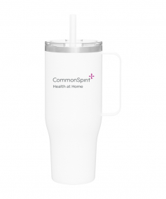 40 oz double wall 18/8 stainless steel thermal mug with copper vacuum insulation, stainless steel rim, dual-purpose push-on clear lid, matching sliding closure, flexible wide silicone straw, and powder coated finish. Individual gift box. Hand wash recommended. Do not microwave. Complies with FDA, Prop 65. 9.75" H x 4" W