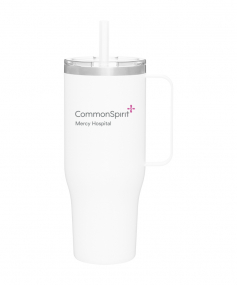 40 oz double wall 18/8 stainless steel thermal mug with copper vacuum insulation, stainless steel rim, dual-purpose push-on clear lid, matching sliding closure, flexible wide silicone straw, and powder coated finish. Individual gift box. Hand wash recommended. Do not microwave. Complies with FDA, Prop 65. 9.75" H x 4" W