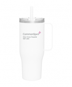 40 oz double wall 18/8 stainless steel thermal mug with copper vacuum insulation, stainless steel rim, dual-purpose push-on clear lid, matching sliding closure, flexible wide silicone straw, and powder coated finish. Individual gift box. Hand wash recommended. Do not microwave. Complies with FDA, Prop 65. 9.75" H x 4" W