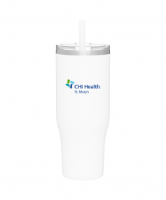 40 oz double wall 18/8 stainless steel thermal tumbler with copper vacuum insulation, stainless steel rim, dual-purpose push-on clear lid, matching sliding closure, flexible wide silicone straw, and powder coated finish