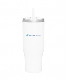 40 oz double wall 18/8 stainless steel thermal tumbler with copper vacuum insulation, stainless steel rim, dual-purpose push-on clear lid, matching sliding closure, flexible wide silicone straw, and powder coated finish