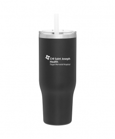 40 oz double wall 18/8 stainless steel thermal tumbler with copper vacuum insulation, stainless steel rim, dual-purpose push-on clear lid, matching sliding closure, flexible wide silicone straw, and powder coated finish