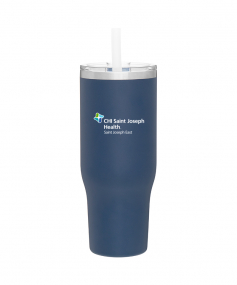40 oz double wall 18/8 stainless steel thermal tumbler with copper vacuum insulation, stainless steel rim, dual-purpose push-on clear lid, matching sliding closure, flexible wide silicone straw, and powder coated finish
