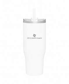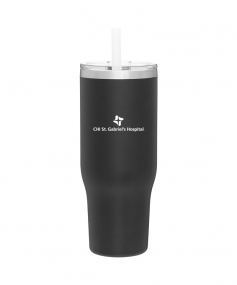 40 oz double wall 18/8 stainless steel thermal tumbler with copper vacuum insulation, stainless steel rim, dual-purpose push-on clear lid, matching sliding closure, flexible wide silicone straw, and powder coated finish