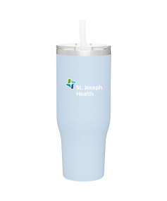 40 oz double wall 18/8 stainless steel thermal tumbler with copper vacuum insulation, stainless steel rim, dual-purpose push-on clear lid, matching sliding closure, flexible wide silicone straw, and powder coated finish