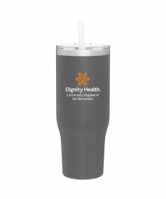 40 oz double wall 18/8 stainless steel thermal tumbler with copper vacuum insulation, stainless steel rim, dual-purpose push-on clear lid, matching sliding closure, flexible wide silicone straw, and powder coated finish
