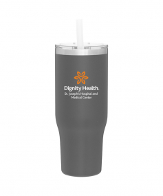 40 oz double wall 18/8 stainless steel thermal tumbler with copper vacuum insulation, stainless steel rim, dual-purpose push-on clear lid, matching sliding closure, flexible wide silicone straw, and powder coated finish