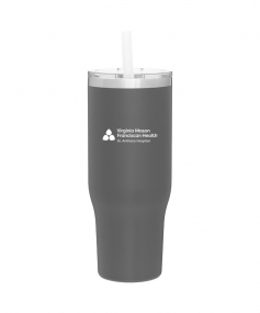 40 oz double wall 18/8 stainless steel thermal tumbler with copper vacuum insulation, stainless steel rim, dual-purpose push-on clear lid, matching sliding closure, flexible wide silicone straw, and powder coated finish