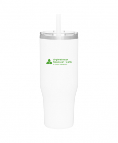 40 oz double wall 18/8 stainless steel thermal tumbler with copper vacuum insulation, stainless steel rim, dual-purpose push-on clear lid, matching sliding closure, flexible wide silicone straw, and powder coated finish