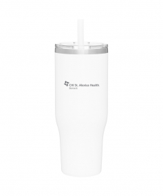 40 oz double wall 18/8 stainless steel thermal tumbler with copper vacuum insulation, stainless steel rim, dual-purpose push-on clear lid, matching sliding closure, flexible wide silicone straw, and powder coated finish