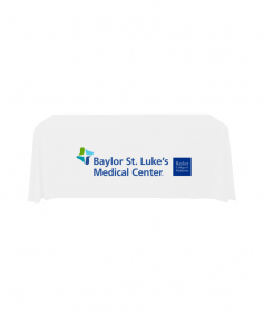 6' Standard PolyPoplin Throw style table cover with one color logo. Designed for quick and easy use while looking great. All corners are rounded meaning they will not gather and lay on the floor. Floor length on all 4 sides. Made from woven polyester. 72" L x 30" D x 29" H