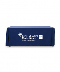 6' Standard PolyPoplin Throw style table cover with one color logo. Designed for quick and easy use while looking great. All corners are rounded meaning they will not gather and lay on the floor. Floor length on all 4 sides. Made from woven polyester. 72" L x 30" D x 29" H
