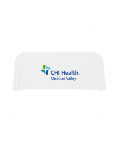6' Standard PolyPoplin Throw style table cover with one color logo. Designed for quick and easy use while looking great. All corners are rounded meaning they will not gather and lay on the floor. Floor length on all 4 sides. Made from woven polyester. 72" L x 30" D x 29" H