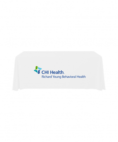 6' Standard PolyPoplin Throw style table cover with one color logo. Designed for quick and easy use while looking great. All corners are rounded meaning they will not gather and lay on the floor. Floor length on all 4 sides. Made from woven polyester. 72" L x 30" D x 29" H