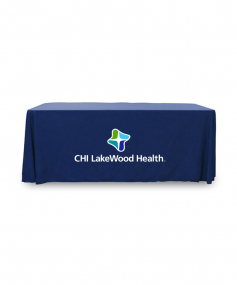 6' Standard PolyPoplin Throw style table cover with one color logo. Designed for quick and easy use while looking great. All corners are rounded meaning they will not gather and lay on the floor. Floor length on all 4 sides. Made from woven polyester. 72" L x 30" D x 29" H
