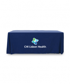 6' Standard PolyPoplin Throw style table cover with one color logo. Designed for quick and easy use while looking great. All corners are rounded meaning they will not gather and lay on the floor. Floor length on all 4 sides. Made from woven polyester. 72" L x 30" D x 29" H