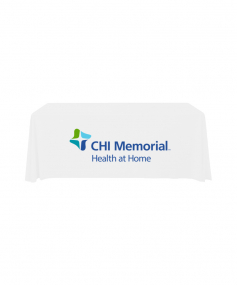 6' Standard PolyPoplin Throw style table cover with one color logo. Designed for quick and easy use while looking great. All corners are rounded meaning they will not gather and lay on the floor. Floor length on all 4 sides. Made from woven polyester. 72" L x 30" D x 29" H